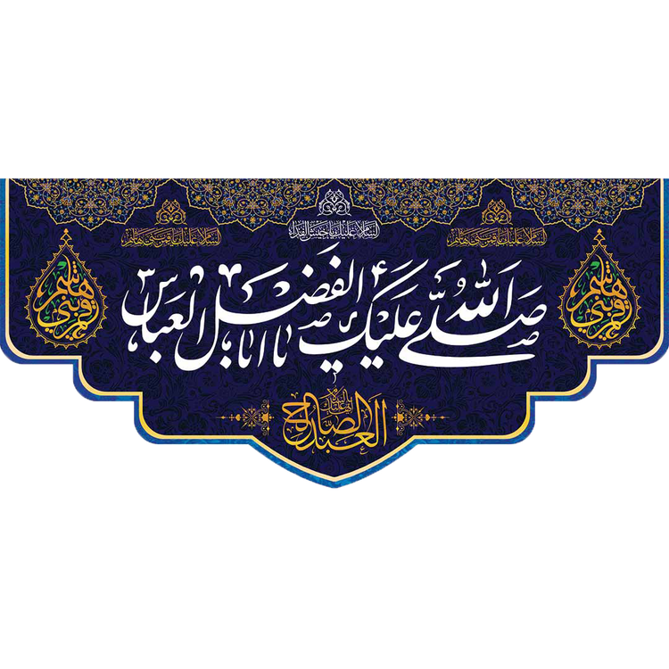 در وسط این کتیبه متن “صلی الله علیک یا ابالفضل العباس” با رنگ سفید قرار دارد.